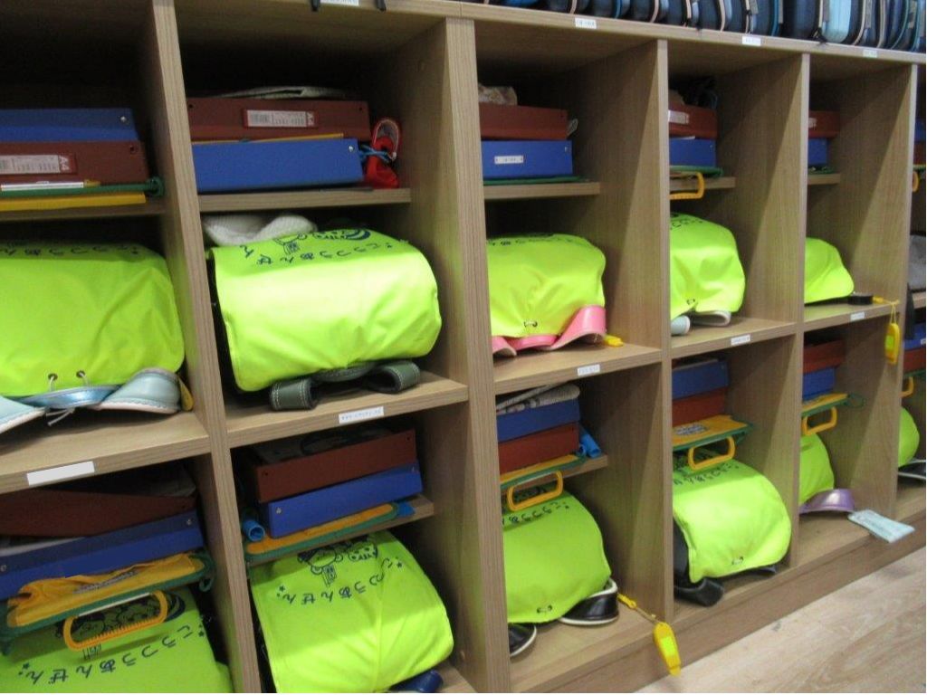 ここにランドセルやお道具箱、持ち帰らない教科書などをしまっておきます。
